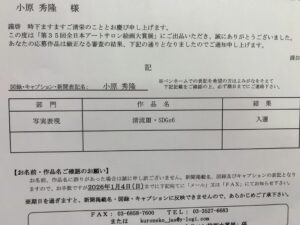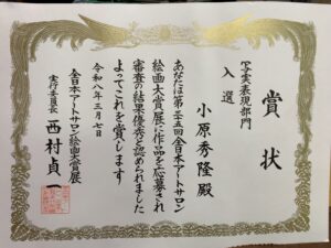 おかげさまで全日本アートサロン絵画大賞展で「入選」を頂きました。応援していただいた多くの方々に厚く御礼申し上げます。展示は東京:2/5~2/16(10日休館)国立新美術館で,大阪:3/3~3/8大阪市立美術館の予定となっております。近くにお住まいの方,ご高覧頂けると幸いです。#絵描きさんと繋がりたい #現代作家の環 #美術ネットワーク #芸術同盟 #芸術の輪 #IYN #art #artwork @artjp4
